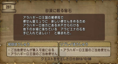 クエNo.261 「砂漠に眠る秘石」クリアしました。