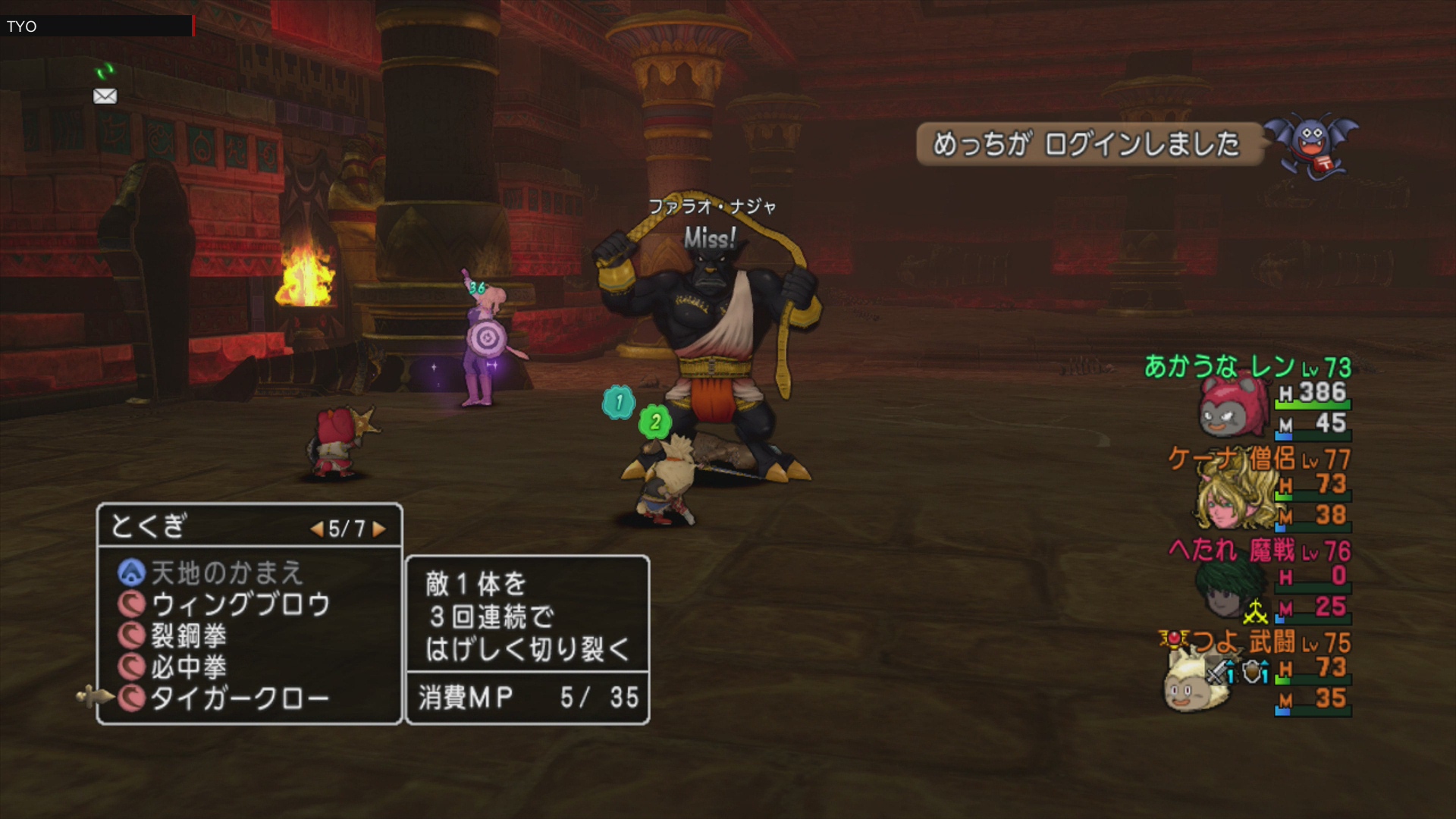 Pt編成は、ブメレン、ツメ武闘、僧侶、ギガ魔戦でした。